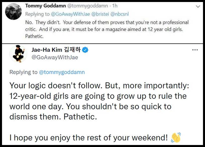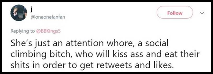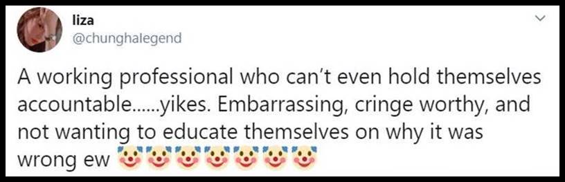 8. Good grief these people are horrible. If they are representative of what our young people are like, we are doomed. Hang in there, Ms. Kim. Keep adding more mean tweets. These people should be shamed and then some.