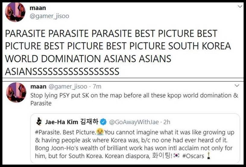In other words … while I love BTS’ music and what they stand for … while I’m very proud of their achievements in a way that only a fellow Korean could understand … My career wasĀ neverĀ built off of them or their success, because I was hereĀ firstĀ doing my own thing. BTS is the kind of group I had been hoping for, but never thought would exist in my lifetime. That they showed up when they did is a bonus, but not myĀ raison d’etreĀ (which, in my case, is my child).
