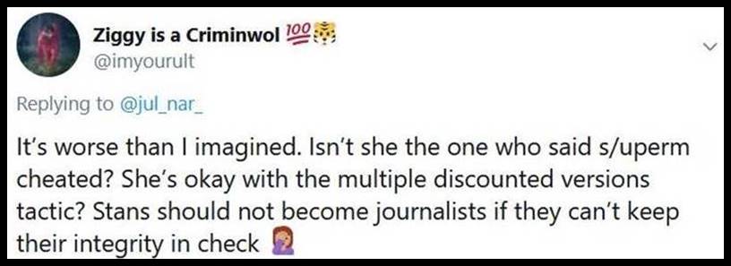 3. That sumoeri is the worst and she’s an idiot always causing drama on Twitter. She doesn’t know what literally means and she also doesn’t know what superstars means. To her Super M are superstars. 🤣 Stan Twitter in general is awful. I hope they’re all 12 but I know some are adults who should know better.