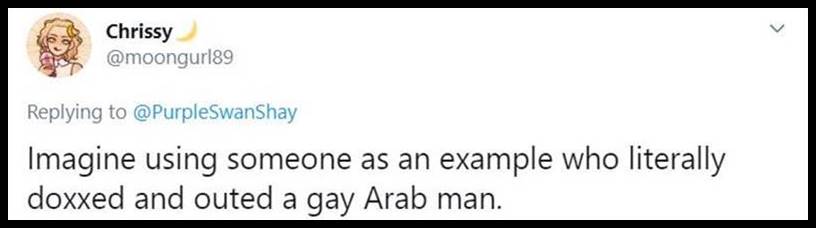Photo 2 is a picture of him and I stand by my words. I would rather be a hag than to be him. It’s obvious to anyone who can read, but I never outed or doxxed anyone. How would I even know that he is a gay Arab man? He isn’t a horrible person because he’s an Arab man or gay. He’s just your run-on-the-mill sexist and ageist troll, who also happens to be racist (judging by the plethora of screen captures circulating around French Twitter.)