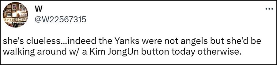 She’s right, though. The US committed atrocities in Korea. You have to question the level of propaganda you have been exposed to in order to expect otherwise.