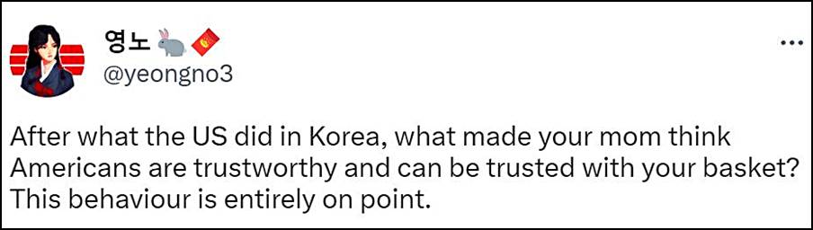 They are so dense and stupid that they can’t read the English language, even though that’s all these “Koreans” can speak, properly. And their level of decency doesn’t exist, which is why they are saying cruel things about your mother.