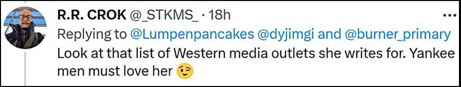 And sometimes they attack me for writing for western publications. Even though I live in the United States and therefore that’s where I work. They do, too! How one would conflate writing for the Chicago Tribune with Yankee men being enamored with me is beyond me. The sexism is obvious and disgusting. But, I suppose, that’s the point of trolls, isn’t it?