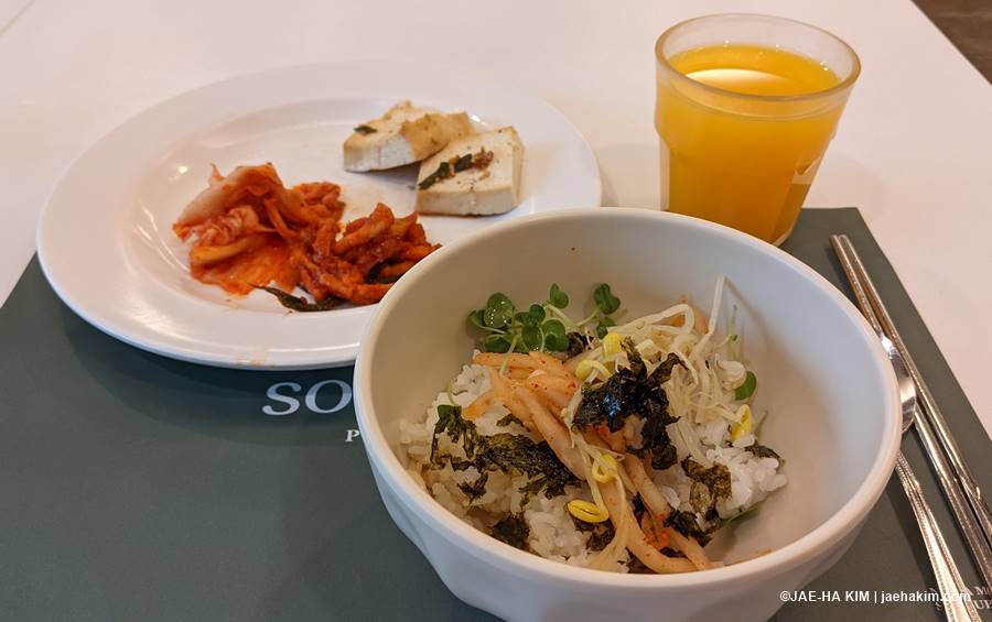 I had breakfast every morning in the residents’ lounge, where you could have a continental breakfast or Korean offerings like 미역국 (seaweed soup), 비빔밥 (rice with seasoned vegetables), kimchi, tofu etc.