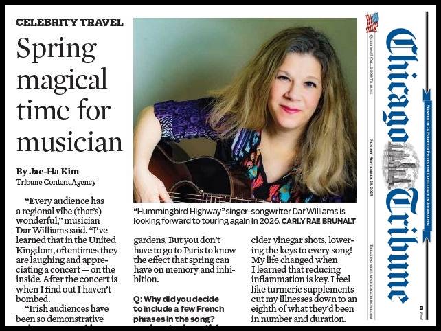 A: We have a national tour for Hummingbird Highway from the winter through spring of 2026, and then I’m off to the UK and Ireland for the first time since 2018.