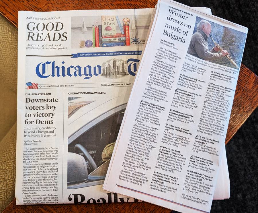 Six-time Grammy Award-winning saxophonist Paul Winter is back with his latest album, “Horn of Plenty.” “It is the literal meaning of cornucopia, the traditional Thanksgiving symbol of abundance,” the musician said. “I have always referred to my soprano sax as a horn, and I’ve aspired to produce a voice on saxophone that is similar to that of a French horn.” Winter, 86, resides in the hills of northwest Connecticut. He keeps fans updated on his tour dates and music on his website and social media (username: @paulwintermusic).