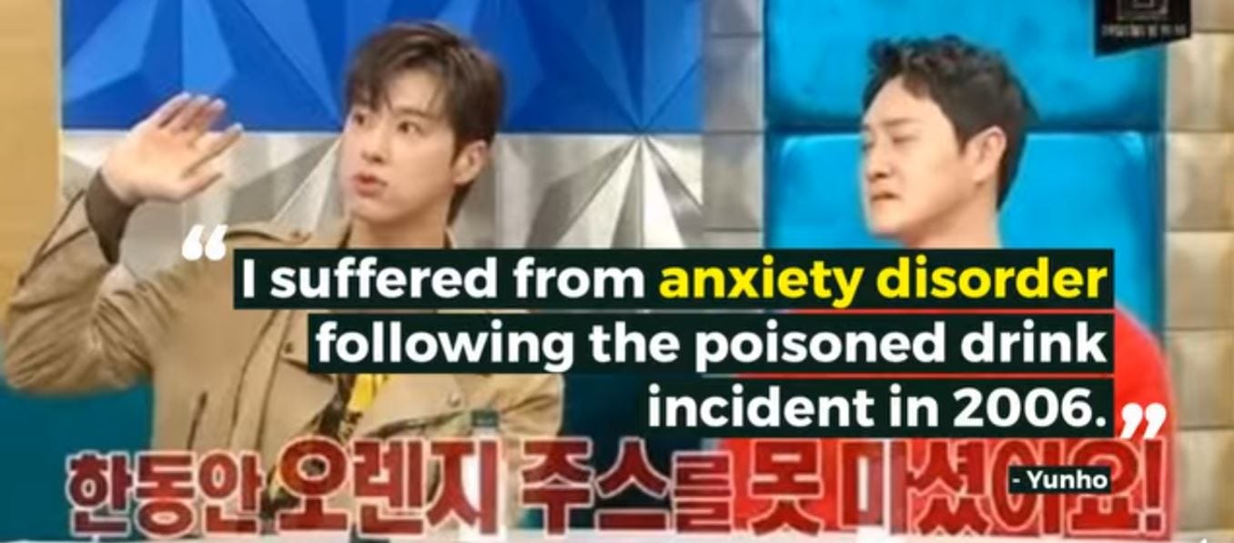2006: TVXQ’s Yunho drank orange juice from someone he assumed was a fan. The stalker had laced the drink with cyanoacrylate adhesive (or super glue). This incident is just one reason why many idols will not accept food from strangers.